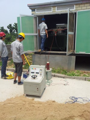 公司在本次工程施工期間,嚴(yán)格按照國(guó)家電力施工執(zhí)行標(biāo)準(zhǔn),結(jié)合安規(guī)要求,前期對(duì)人員進(jìn)行技能和安全教育并全員考試通過。使用的設(shè)備材料均由當(dāng)?shù)毓╇姴块T認(rèn)可或電網(wǎng)集中招標(biāo)中標(biāo)廠家產(chǎn)品。公司使用的實(shí)驗(yàn)設(shè)備均按照山東電力監(jiān)管承裝修試企業(yè)協(xié)會(huì)指定的實(shí)驗(yàn)設(shè)備進(jìn)行操作。(下圖為我公司人員在現(xiàn)場(chǎng)施工及實(shí)驗(yàn)的圖片)