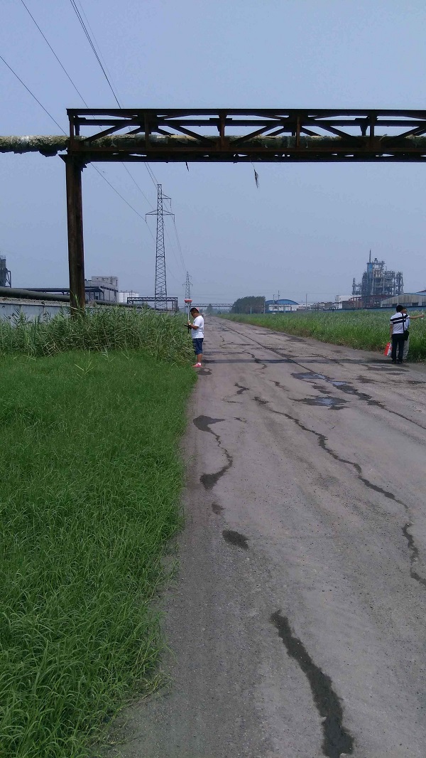 濟南章丘明水化工35kV線路勘測現(xiàn)場,技術部人員進行現(xiàn)場地形,線路考察,測量距離,從而確定安全,合理,可靠的電纜敷設方案,和架設電線桿方案。為后續(xù)項目的設計和施工做好鋪墊。