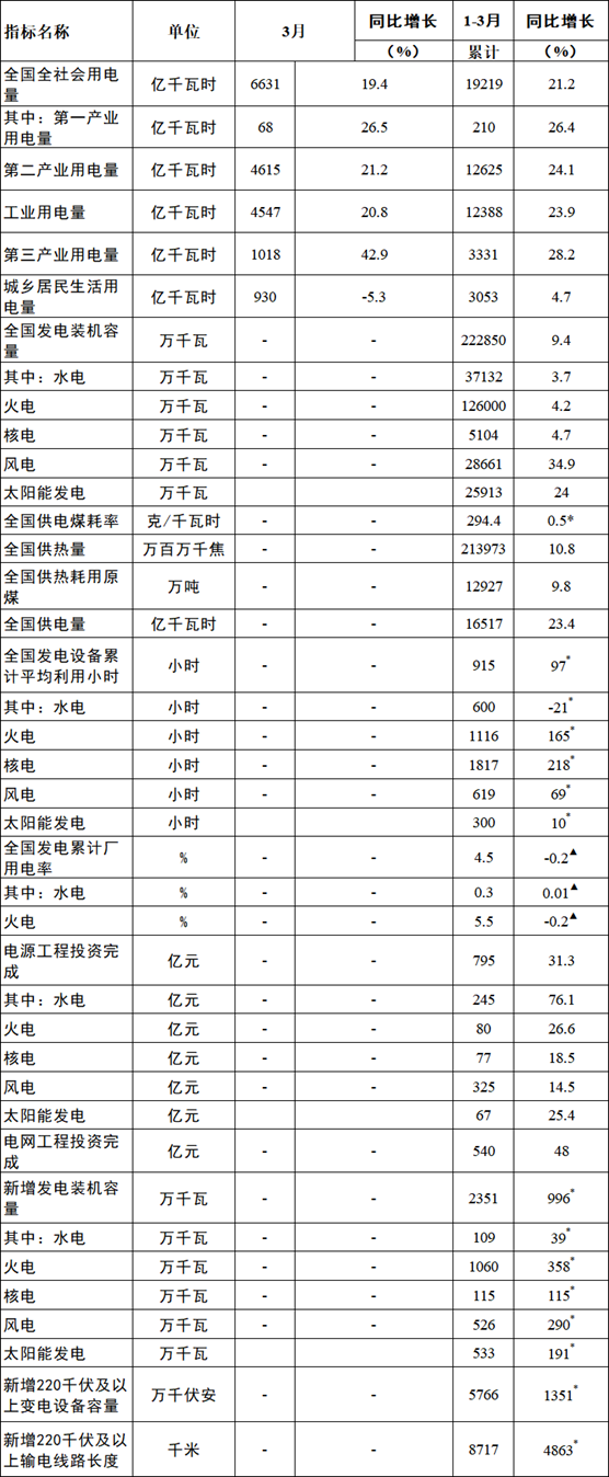 國家能源局發(fā)布1-3月全國電力工業(yè)統(tǒng)計數(shù)據(jù)