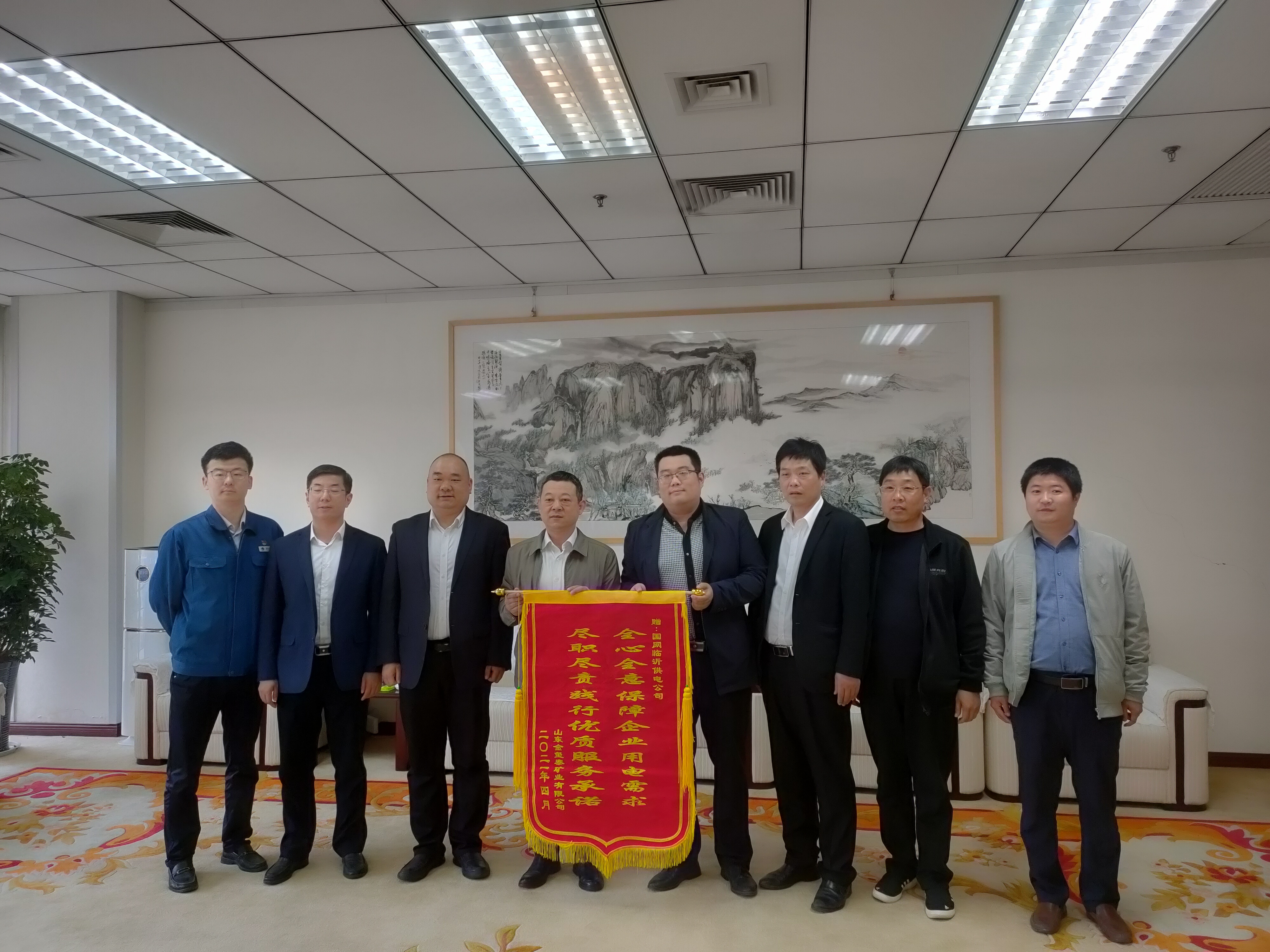 山東山大世紀(jì)科技有限公司生產(chǎn)總監(jiān)王猛同志陪同用戶山東金璽泰集團領(lǐng)導(dǎo)到臨沂供電公司贈送錦旗