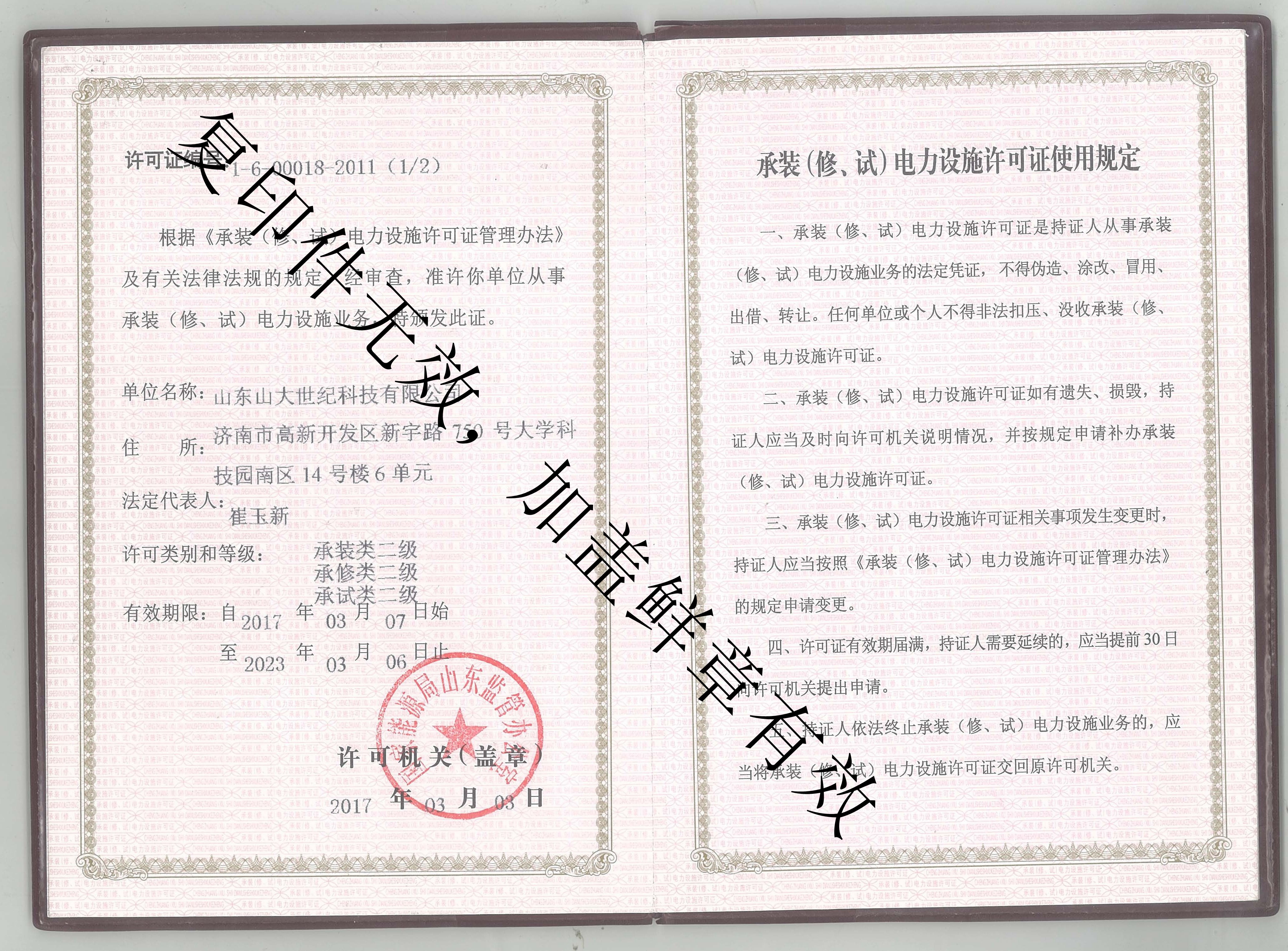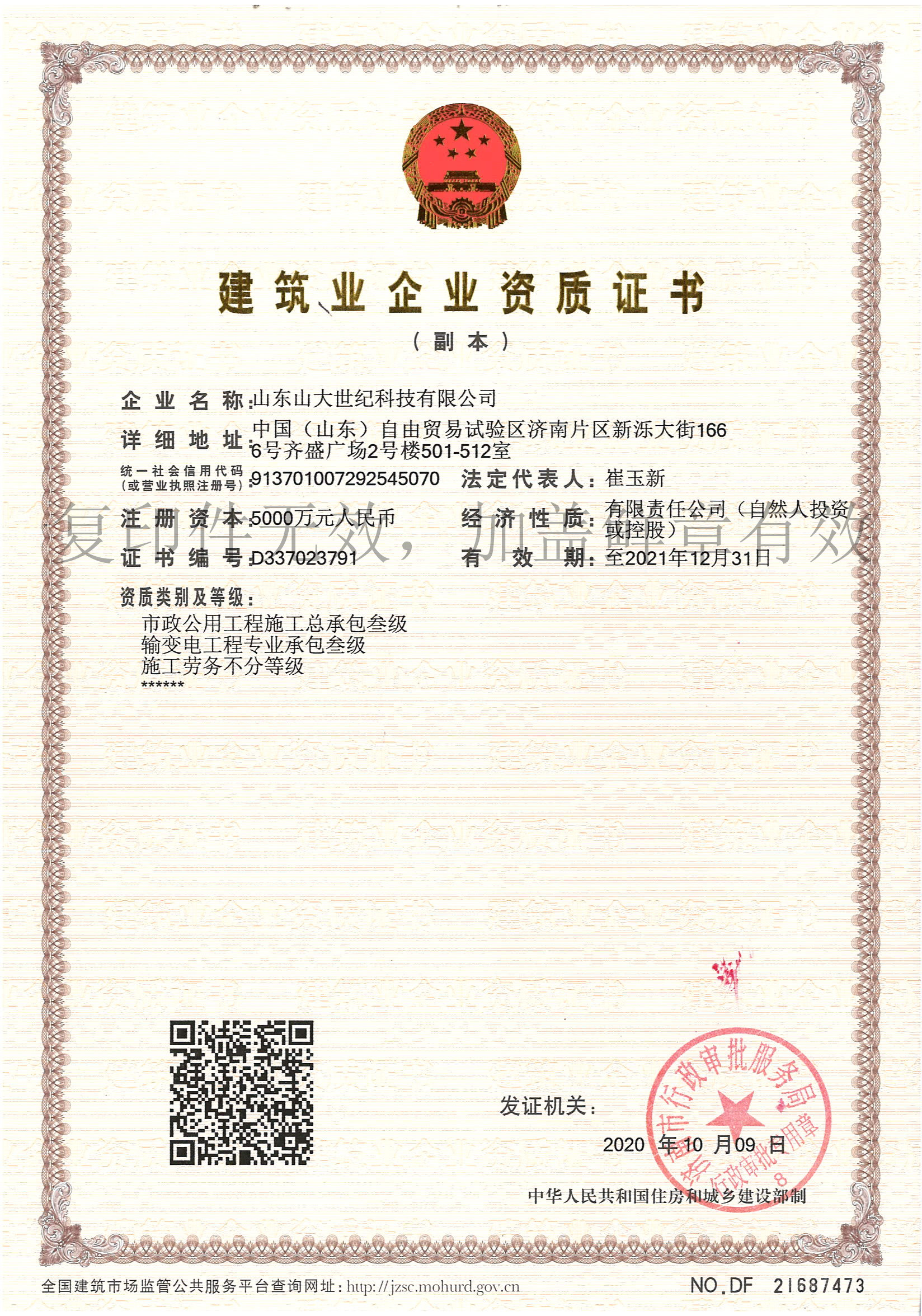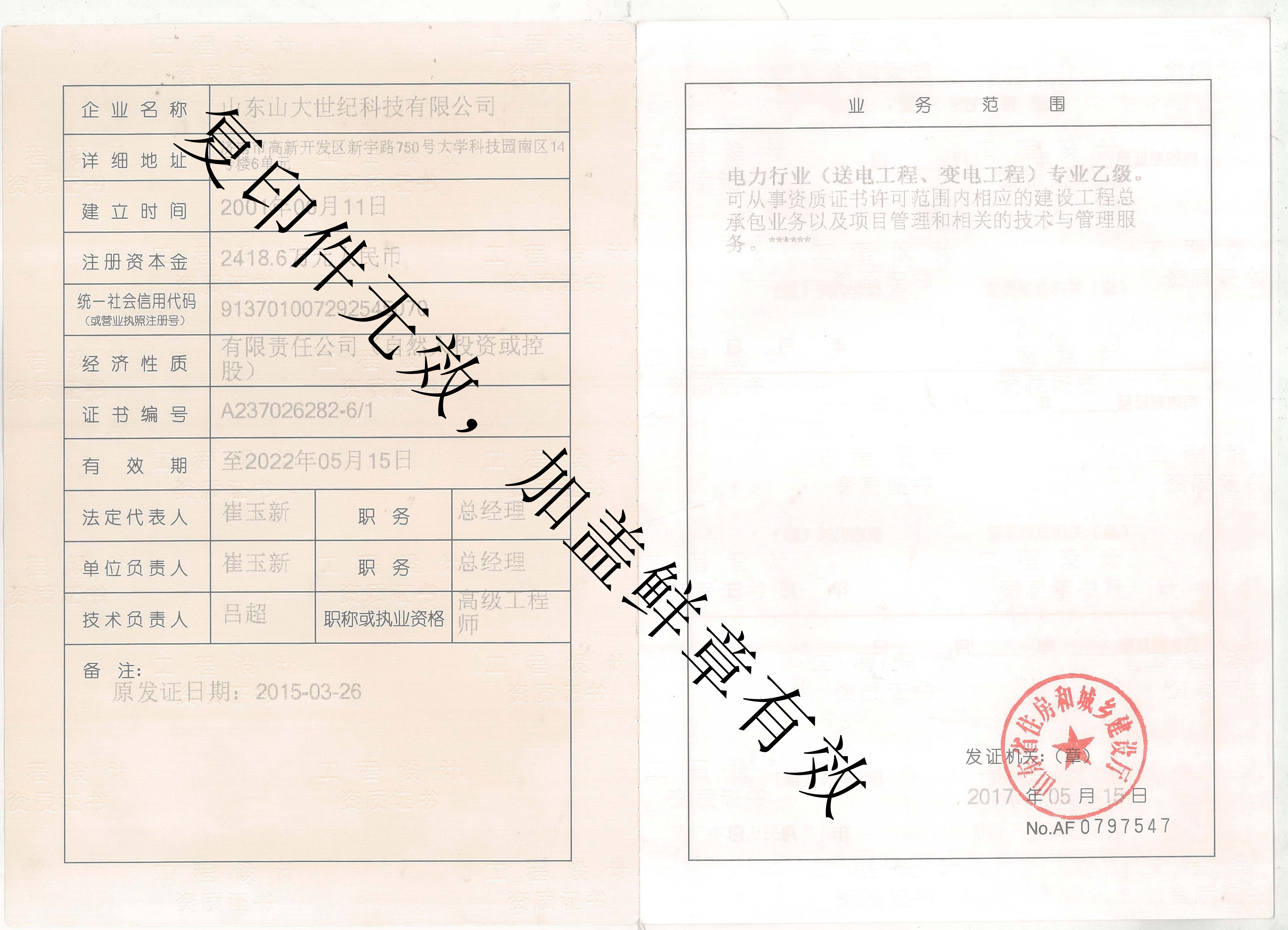 市政公用工程施工總承包叁級;輸變電工程專業(yè)承包叁級;施工勞務(wù)不分等級
