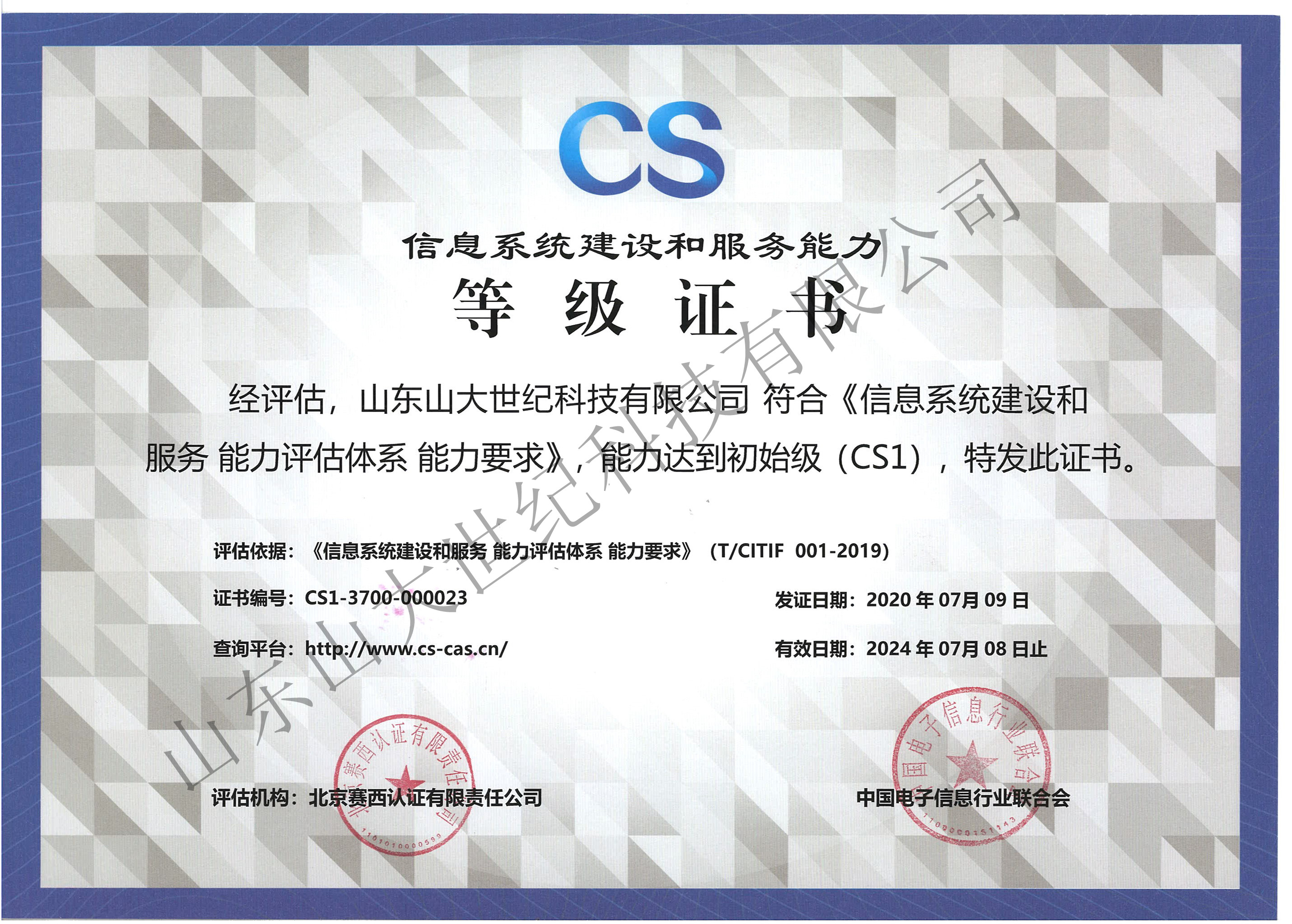 信息系統(tǒng)建設(shè)和服務(wù)能力評估體系CS1級證書